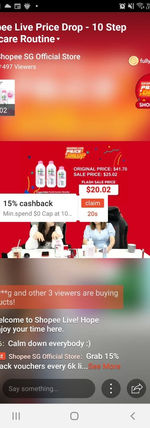 Live Stream Screen Minimisation to allow users to shop while they watch Shopee Live.
